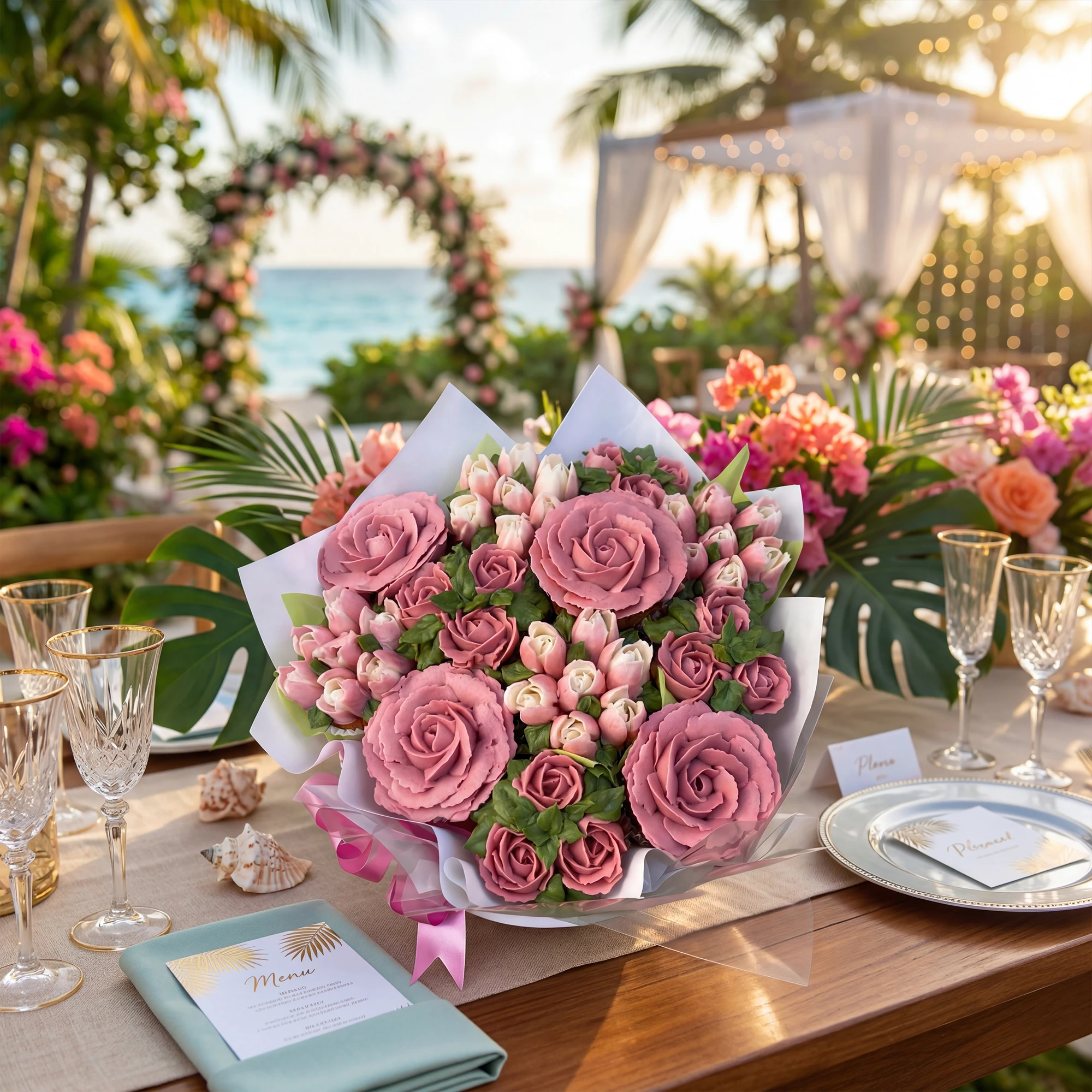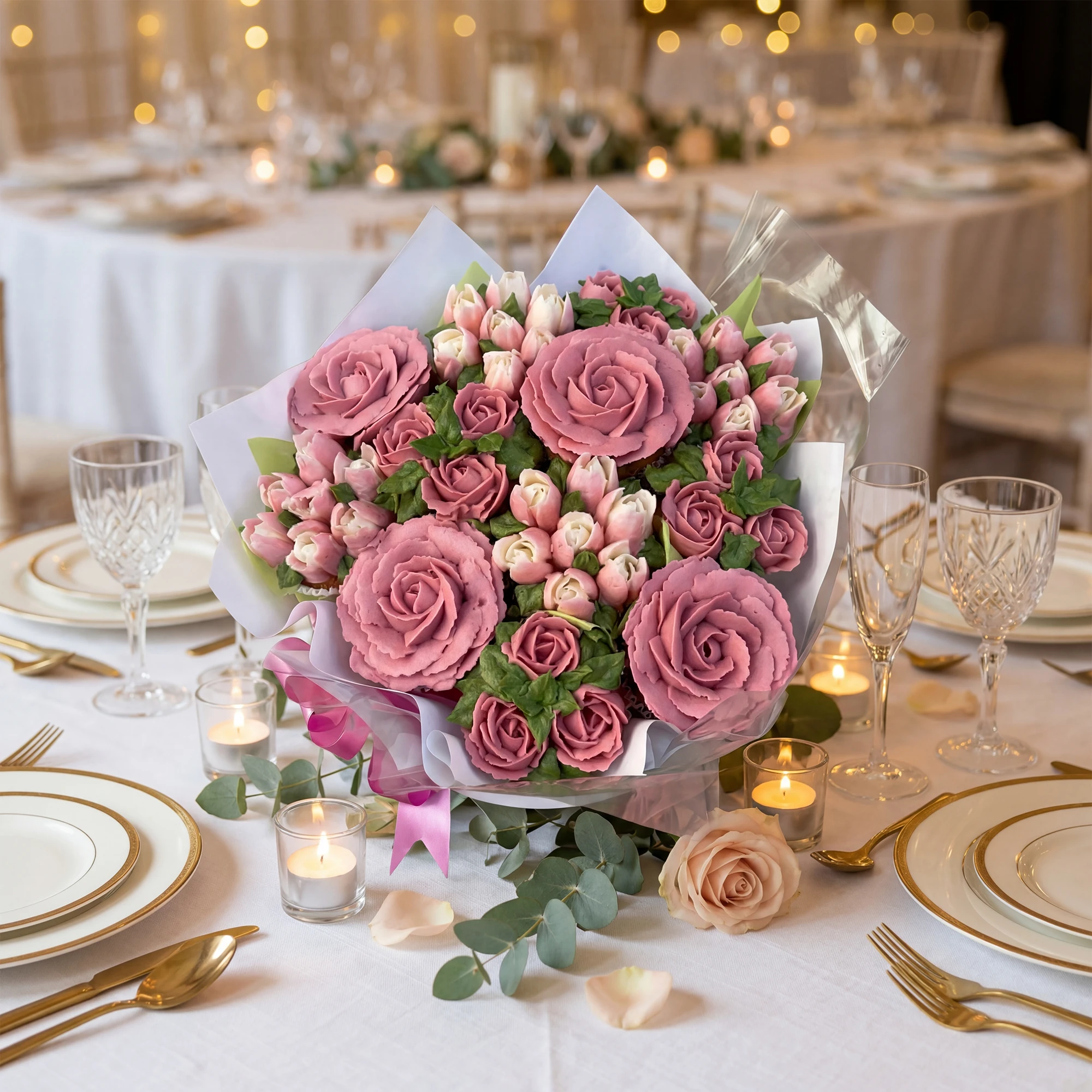 Elegant cupcake centrepieces perfect for weddings, bridal showers, and special event table decorations.
